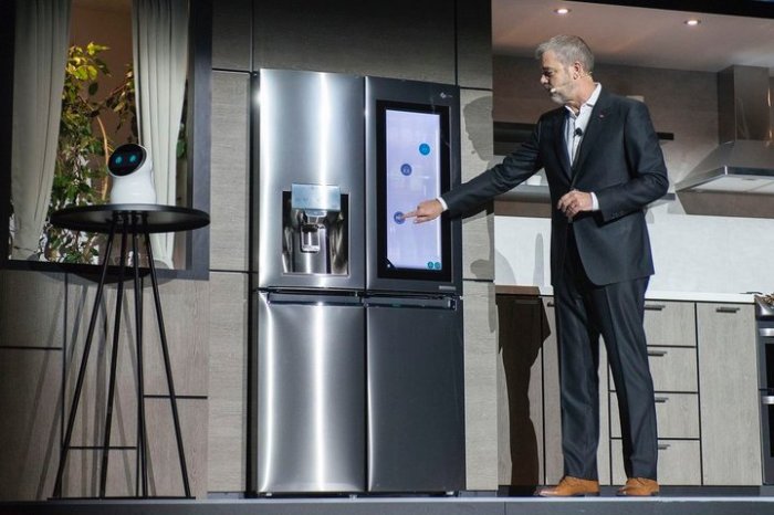 Наконец, упоминания заслуживает прозрачный холодильник от LG, который называется InstaView ThinQ. Аппарат получил 29-дюймовый сенсорный дисплей, который становится абсолютно прозрачным, если постучать по нему два раза. На самом деле, материал вовсе не прозрачный. Это экран, который по команде может транслировать картинку с соответствующей внутренней камеры. Такое хитроумное решение сделано не только для того, чтобы с чистой совестью лениться еще больше, но и для того, чтобы беречь холод в холодильнике - как следствие продукты и электроэнергию.